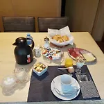 En kontinental frukost med olika matalternativ serveras varje morgon.